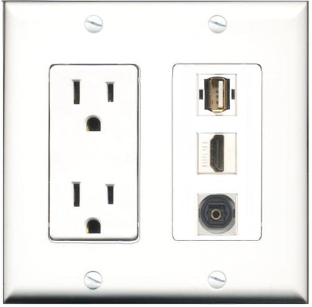 RiteAV - 15 Amp Power Outlet 1 Port HDMI 1 Port USB A-A 1 Port Toslink Decorative Wall Plate