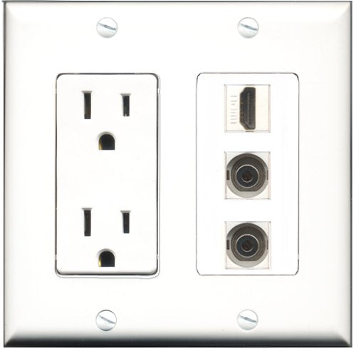 RiteAV - 15 Amp Power Outlet 1 Port HDMI 2 Port 3.5mm Decorative Wall Plate