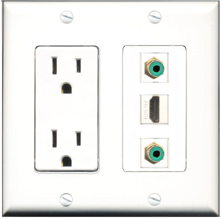 RiteAV - 15 Amp Power Outlet 1 Port HDMI 2 Port RCA Green Decorative Wall Plate