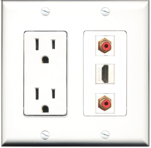 RiteAV - 15 Amp Power Outlet 1 Port HDMI 2 Port RCA Red Decorative Wall Plate