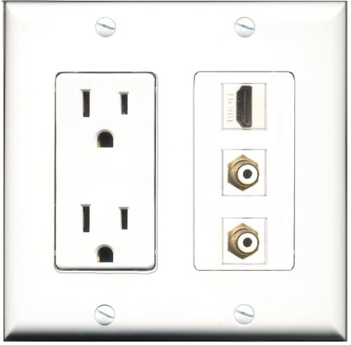 RiteAV - 15 Amp Power Outlet 1 Port HDMI 2 Port RCA White Decorative Wall Plate