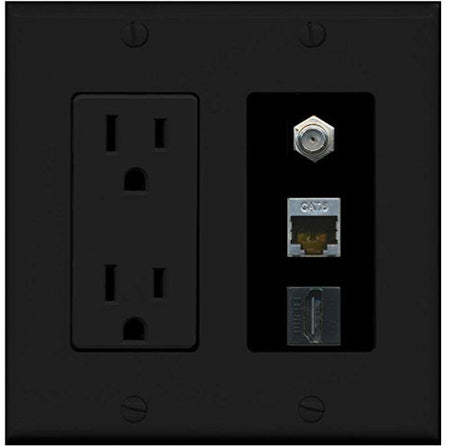 RiteAV - 15 Amp Power Outlet 1 Port HDMI Coax Shielded Cat6 Ethernet Ethernet Wall Plate - Black