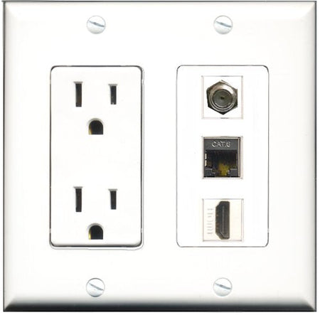 RiteAV - 15 Amp Power Outlet 1 Port HDMI Coax Shielded Cat6 Ethernet Ethernet Wall Plate - White