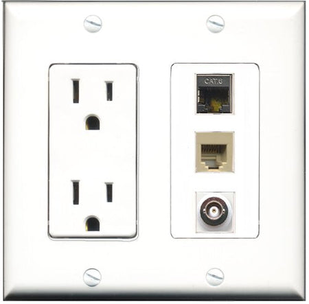 RiteAV - 15 Amp Power Outlet 1 Port Phone Beige 1 Port Shielded Cat6 Ethernet Ethernet 1 Port BNC Decorative Wall Plate