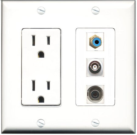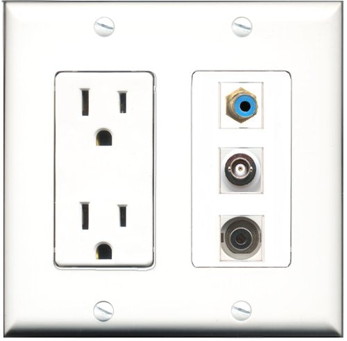 RiteAV - 15 Amp Power Outlet 1 Port RCA Blue 1 Port 3.5mm 1 Port BNC Decorative Wall Plate