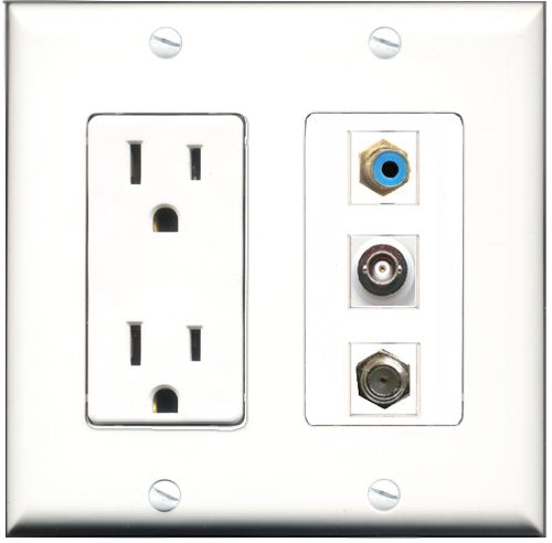 RiteAV - 15 Amp Power Outlet 1 Port RCA Blue 1 Port Coax 1 Port BNC Decorative Wall Plate