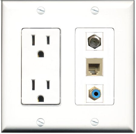 RiteAV - 15 Amp Power Outlet 1 Port RCA Blue 1 Port Coax 1 Port Phone Beige Decorative Wall Plate