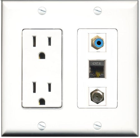 RiteAV - 15 Amp Power Outlet 1 Port RCA Blue 1 Port Coax 1 Port Shielded Cat6 Ethernet Ethernet Decorative Wall Plate