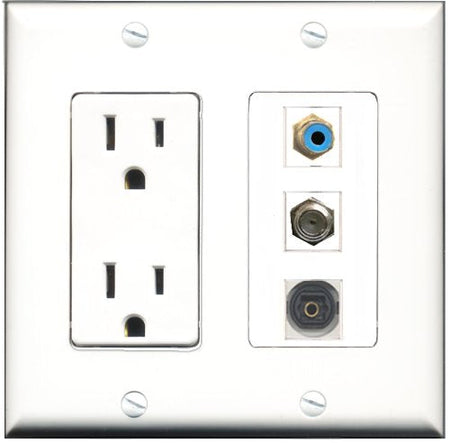 RiteAV - 15 Amp Power Outlet 1 Port RCA Blue 1 Port Coax 1 Port Toslink Decorative Wall Plate