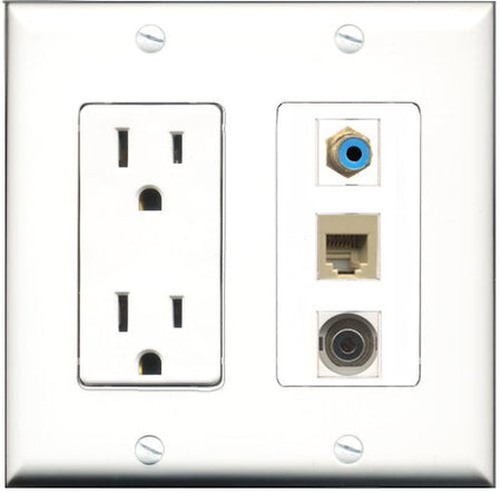 RiteAV - 15 Amp Power Outlet 1 Port RCA Blue 1 Port Phone Beige 1 Port 3.5mm Decorative Wall Plate