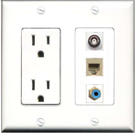 RiteAV - 15 Amp Power Outlet 1 Port RCA Blue 1 Port Phone Beige 1 Port BNC Decorative Wall Plate