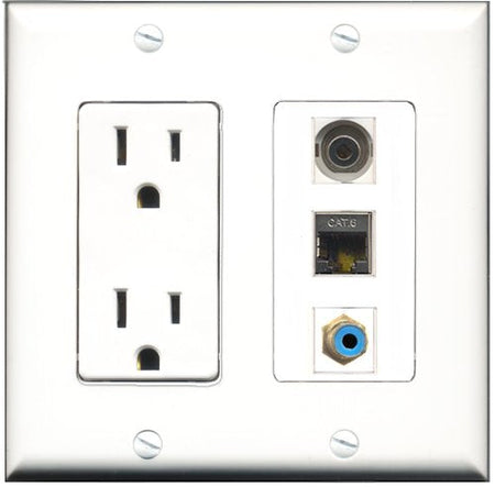 RiteAV - 15 Amp Power Outlet 1 Port RCA Blue 1 Port Shielded Cat6 Ethernet Ethernet 1 Port 3.5mm Decorative Wall Plate