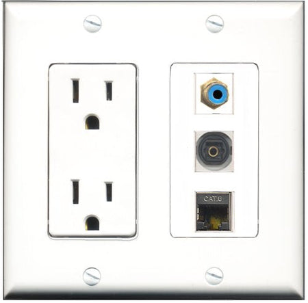 RiteAV - 15 Amp Power Outlet 1 Port RCA Blue 1 Port Shielded Cat6 Ethernet Ethernet 1 Port Toslink Decorative Wall Plate