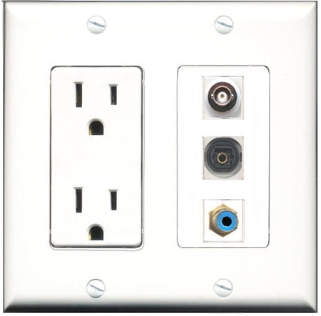 RiteAV - 15 Amp Power Outlet 1 Port RCA Blue 1 Port Toslink 1 Port BNC Decorative Wall Plate
