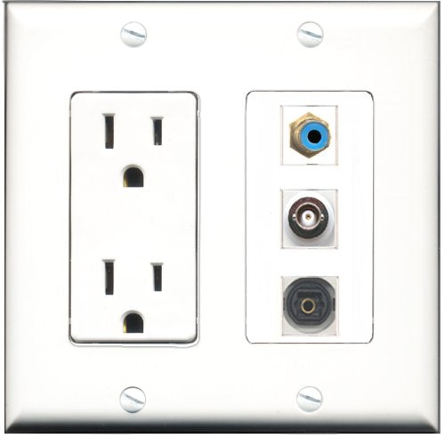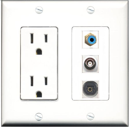 RiteAV - 15 Amp Power Outlet 1 Port RCA Blue 1 Port Toslink 1 Port BNC Decorative Wall Plate