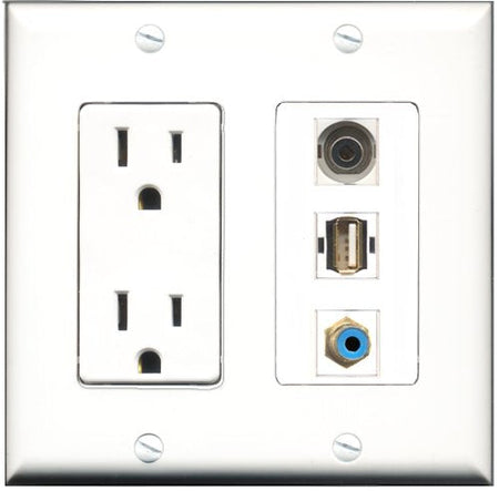 RiteAV - 15 Amp Power Outlet 1 Port RCA Blue 1 Port USB A-A 1 Port 3.5mm Decorative Wall Plate