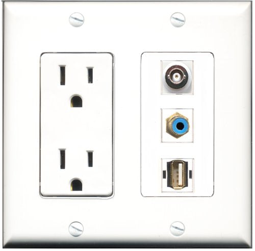 RiteAV - 15 Amp Power Outlet 1 Port RCA Blue 1 Port USB A-A 1 Port BNC Decorative Wall Plate