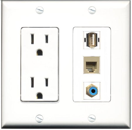 RiteAV - 15 Amp Power Outlet 1 Port RCA Blue 1 Port USB A-A 1 Port Phone Beige Decorative Wall Plate