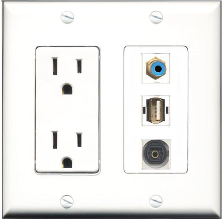 RiteAV - 15 Amp Power Outlet 1 Port RCA Blue 1 Port USB A-A 1 Port Toslink Decorative Wall Plate