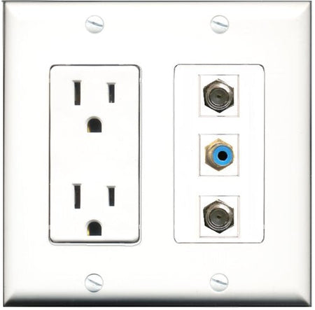 RiteAV - 15 Amp Power Outlet 1 Port RCA Blue 2 Port Coax Decorative Wall Plate