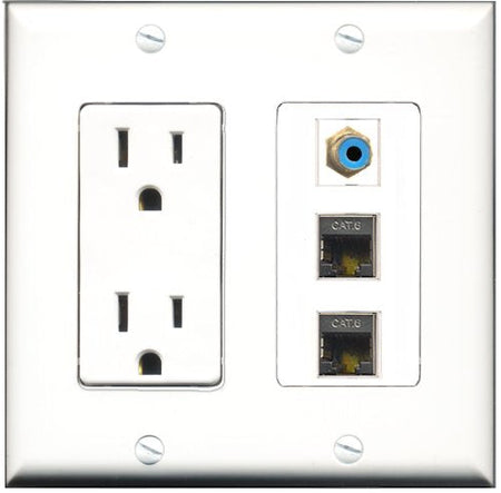 RiteAV - 15 Amp Power Outlet 1 Port RCA Blue 2 Port Shielded Cat6 Ethernet Ethernet Decorative Wall Plate