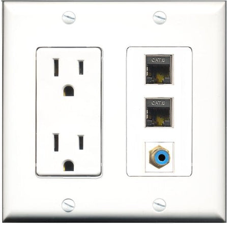 RiteAV - 15 Amp Power Outlet 1 Port RCA Blue 2 Port Shielded Cat6 Ethernet Ethernet Decorative Wall Plate