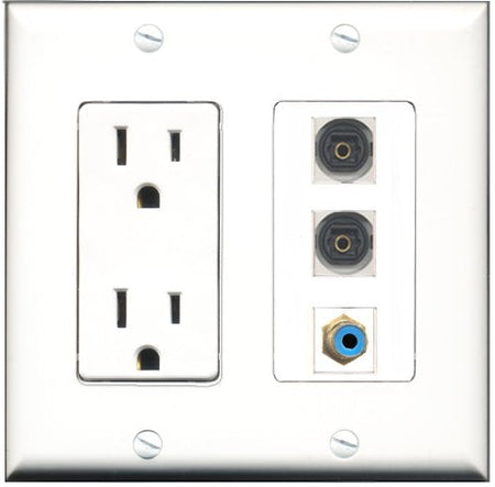 RiteAV - 15 Amp Power Outlet 1 Port RCA Blue 2 Port Toslink Decorative Wall Plate