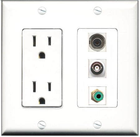 RiteAV - 15 Amp Power Outlet 1 Port RCA Green 1 Port 3.5mm 1 Port BNC Decorative Wall Plate