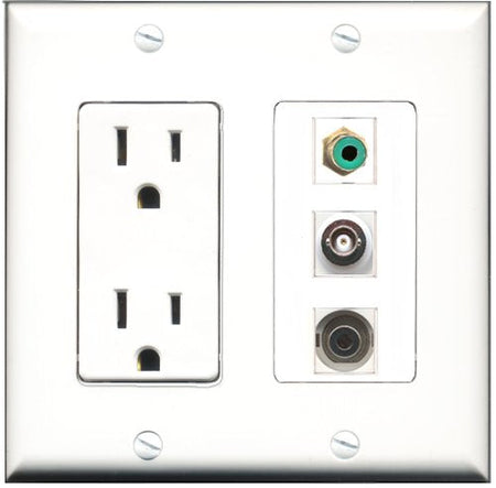 RiteAV - 15 Amp Power Outlet 1 Port RCA Green 1 Port 3.5mm 1 Port BNC Decorative Wall Plate