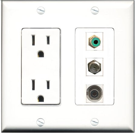 RiteAV - 15 Amp Power Outlet 1 Port RCA Green 1 Port Coax 1 Port 3.5mm Decorative Wall Plate
