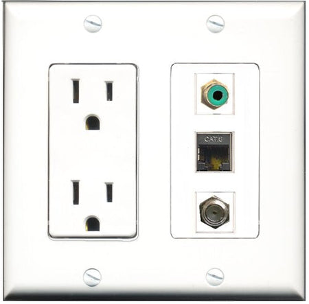 RiteAV - 15 Amp Power Outlet 1 Port RCA Green 1 Port Coax 1 Port Shielded Cat6 Ethernet Ethernet Decorative Wall Plate