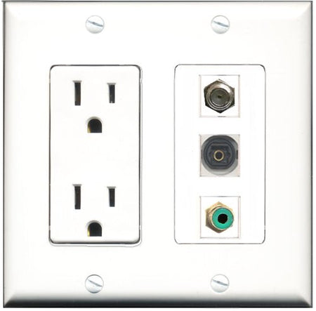 RiteAV - 15 Amp Power Outlet 1 Port RCA Green 1 Port Coax 1 Port Toslink Decorative Wall Plate