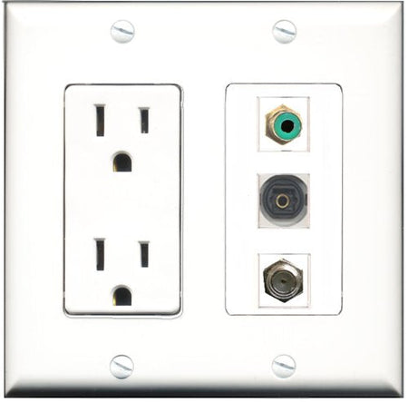 RiteAV - 15 Amp Power Outlet 1 Port RCA Green 1 Port Coax 1 Port Toslink Decorative Wall Plate