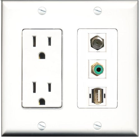 RiteAV - 15 Amp Power Outlet 1 Port RCA Green 1 Port Coax 1 Port USB A-A Decorative Wall Plate