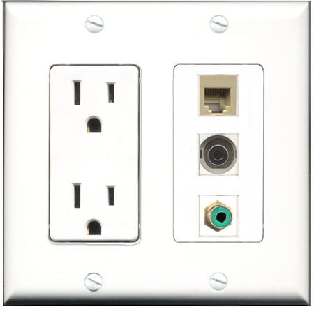 RiteAV - 15 Amp Power Outlet 1 Port RCA Green 1 Port Phone Beige 1 Port 3.5mm Decorative Wall Plate