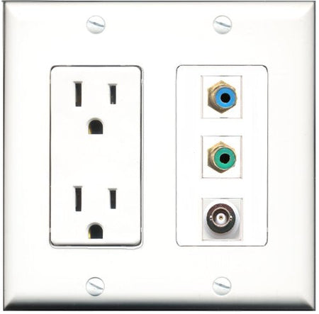 RiteAV - 15 Amp Power Outlet 1 Port RCA Green 1 Port RCA Blue 1 Port BNC Decorative Wall Plate
