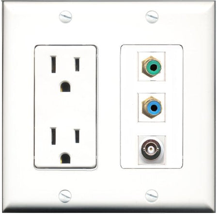 RiteAV - 15 Amp Power Outlet 1 Port RCA Green 1 Port RCA Blue 1 Port BNC Decorative Wall Plate