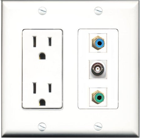 RiteAV - 15 Amp Power Outlet 1 Port RCA Green 1 Port RCA Blue 1 Port BNC Decorative Wall Plate