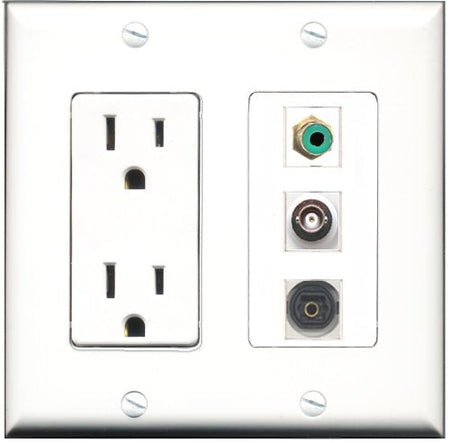 RiteAV - 15 Amp Power Outlet 1 Port RCA Green 1 Port Toslink 1 Port BNC Decorative Wall Plate
