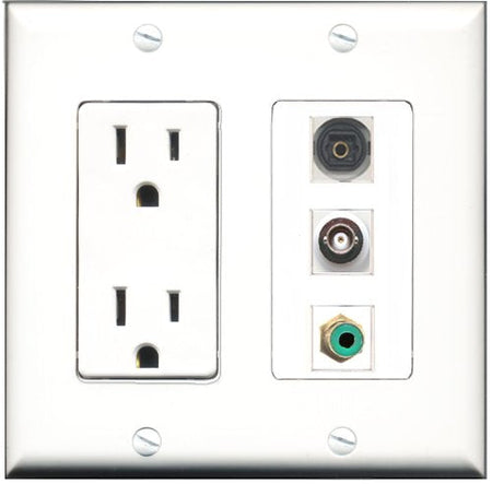RiteAV - 15 Amp Power Outlet 1 Port RCA Green 1 Port Toslink 1 Port BNC Decorative Wall Plate