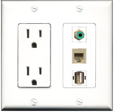 RiteAV - 15 Amp Power Outlet 1 Port RCA Green 1 Port USB A-A 1 Port Phone Beige Decorative Wall Plate