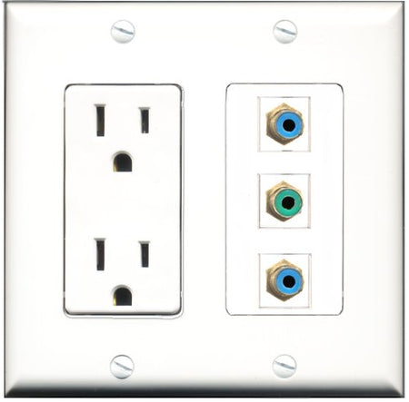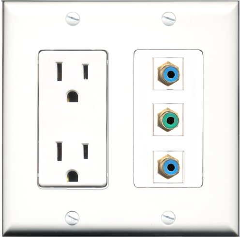 RiteAV - 15 Amp Power Outlet 1 Port RCA Green 2 Port RCA Blue Decorative Wall Plate
