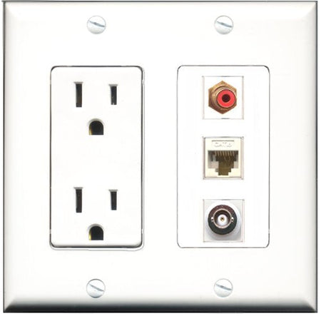 RiteAV - 15 Amp Power Outlet 1 Port RCA Red 1 Port BNC 1 Port Cat6 Ethernet Ethernet White Decorative Wall Plate
