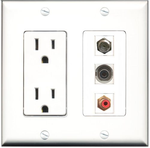 RiteAV - 15 Amp Power Outlet 1 Port RCA Red 1 Port Coax 1 Port 3.5mm Decorative Wall Plate