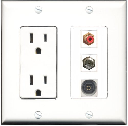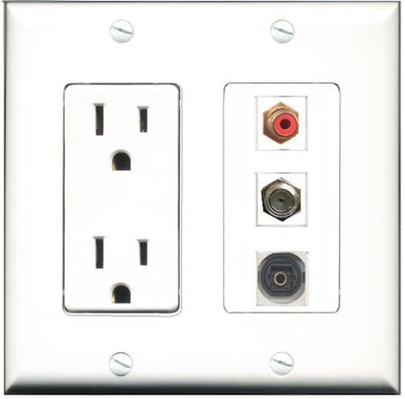 RiteAV - 15 Amp Power Outlet 1 Port RCA Red 1 Port Coax 1 Port Toslink Decorative Wall Plate