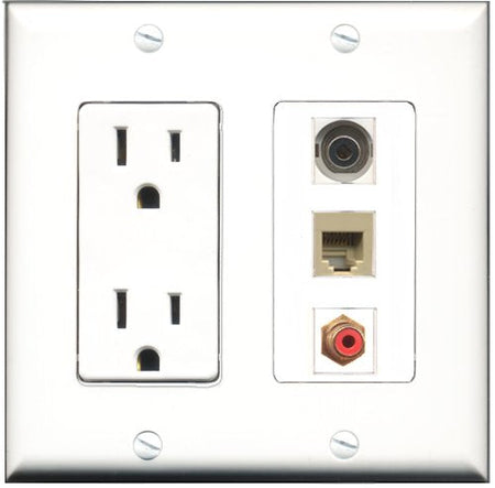 RiteAV - 15 Amp Power Outlet 1 Port RCA Red 1 Port Phone Beige 1 Port 3.5mm Decorative Wall Plate