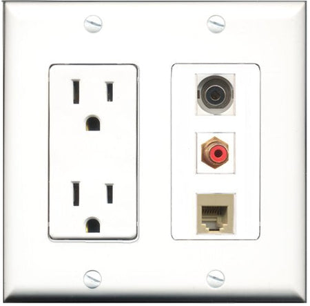 RiteAV - 15 Amp Power Outlet 1 Port RCA Red 1 Port Phone Beige 1 Port 3.5mm Decorative Wall Plate