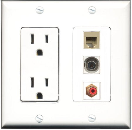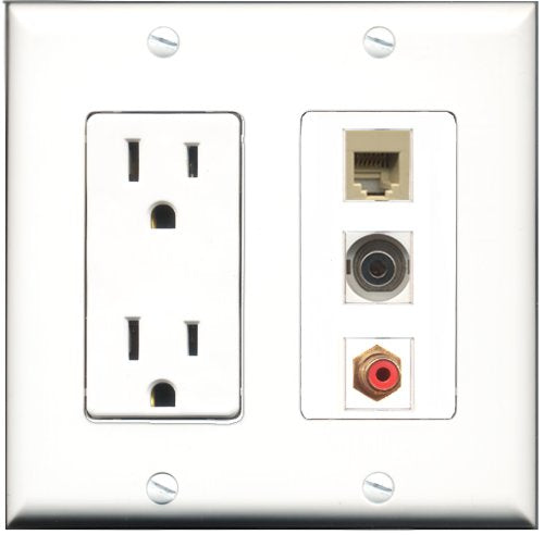 RiteAV - 15 Amp Power Outlet 1 Port RCA Red 1 Port Phone Beige 1 Port 3.5mm Decorative Wall Plate