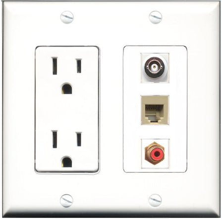 RiteAV - 15 Amp Power Outlet 1 Port RCA Red 1 Port Phone Beige 1 Port BNC Decorative Wall Plate