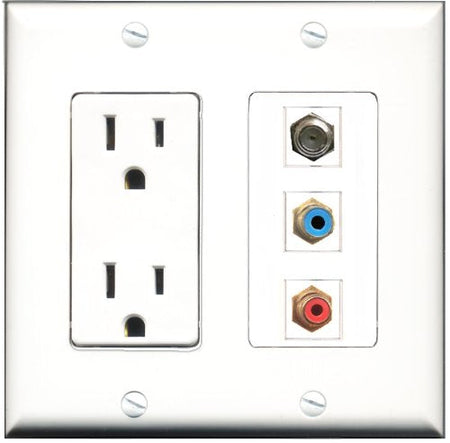 RiteAV - 15 Amp Power Outlet 1 Port RCA Red 1 Port RCA Blue 1 Port Coax Decorative Wall Plate